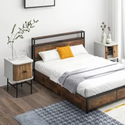 Tangkula Set Of 2 Drawer Nightstand Bedside Table Compact Sofa End Table Rustic Walnut