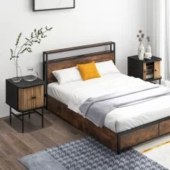 Tangkula Retro Wooden Side End Table Rectangular Nightstand With 2 Drawers And Shelf Coffee/Brown