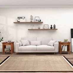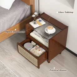 Tangkula 2PCS Boho Style Nightstand 3-Tier Sofa Side End Table W/ Drawer & Shelf Walnut