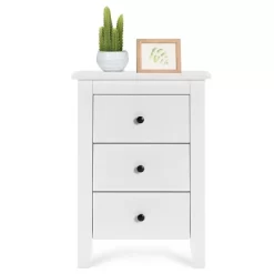 Tangkula 2PCS Fabric Bedside Table 3 Drawers Nightstand Small Dresser Bedroom Living Room