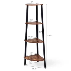 Tangkula 4-layers Corner Shelf Metal Storage Rack Bookcase Display Stand Wood