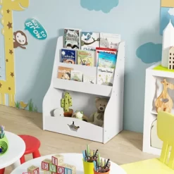 Tangkula Kids Bookshelf W/3-Tier Bookshelves Open Compartment & 2 Foldable Fabric Drawers