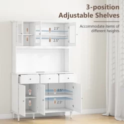 Tangkula 67″ Bakers Rack W/ Power Outlet Coffee Bar Cabinet W/ S-Shaped Hooks