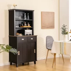 Tangkula Freestanding Buffet Hutch Kitchen Pantry Storage Cabinet W/ Sliding Doors