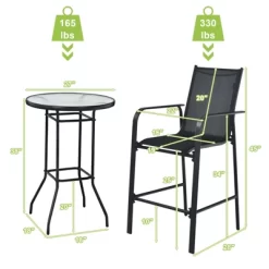 Tangkula 3 PCS Patio Bistro Set Outdoor Table & Chairs Set W/Tempered Glass Top Black