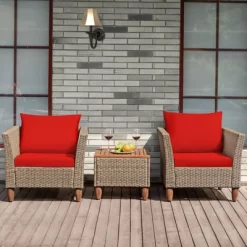 Tangkula 3 Piece Outdoor Rattan Sofa Set Wicker Conversation Furniture Set With Cushions