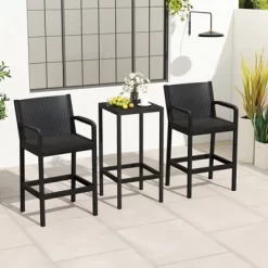 Tangkula 3 Piece Patio Bar Set Bistro Table & Chairs W/ Heavy-Duty Metal Frame