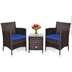 Tangkula 3-Piece Patio Wicker Rattan Furniture Set Conversation Sofa Set With Coffee Table Navy
