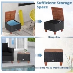 Tangkula 3PCS Patio PE Rattan Conversation Furniture Set Bistro Set Acacia Wood Tabletop
