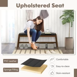 Tangkula 2 PCS Acacia Wood Outdoor Bench 48″ Long Backless Wooden Picnic Bench W/ Slatted Seat