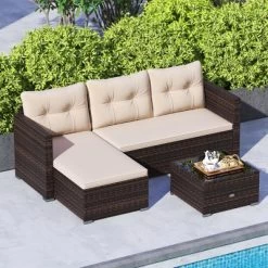 Tangkula 4 Seats Outdoor Patio Furniture Set L-Shaped Couch Set For Yard