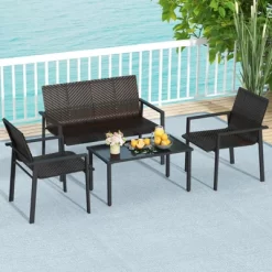 Tangkula 4-Piece Outdoor Patio Furniture Set Rattan Wicker Conversation Sofa Set Black