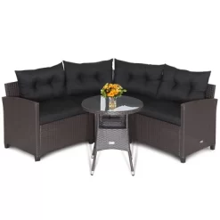 Tangkula 4PCS Wicker Patio Sofa Set Rattan Outdoor Furniture Set W/ Black Cushions