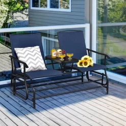 Tangkula 2-Person Outdoor Glider Chair Patio Rocking Lounge Chair W/ Breathable Fabric
