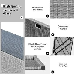 Tangkula 9PCS Furniture Set W/ 32″ Fire Pit Table 50,000 BTU Square Propane Fire Pit Patio Gray