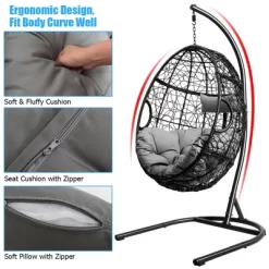 Tangkula Grey Folding Recliner Patio Rattan Zero Gravity Lounge Chair With Headrest