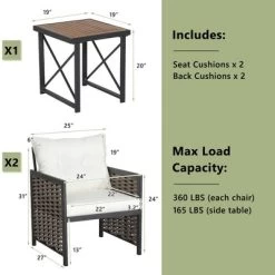 Tangkula Outdoor 3 Pieces Patio Rattan Chair & Coffee Table Set Furniture Set Backyard Poolside