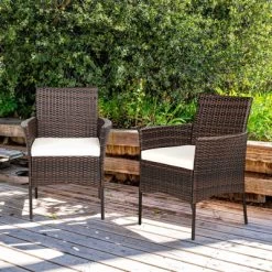 Tangkula Outdoor 4 PCS Rattan Dining Chair Patio Cushioned Arm Chair W/Zipper Brown