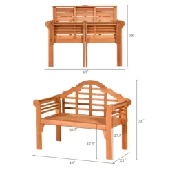 Tangkula Outdoor Solid Wood Bench Backless Dining Bench W/ Slatted Seat