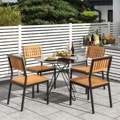 Tangkula Patio Dining Table For 8 79″ Large Rectangle Table W/ Acacia Wood Tabletop