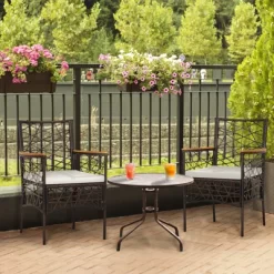 Tangkula Patio Loveseat W/ Removable Pillows & Seat Cushion Side Armrest Metal Frame