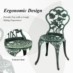 Tangkula Rose Design Bistro Set Antique Aluminum Bench Patio Garden Chair For Outdoor Green