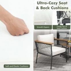 Tangkula Set Of 3 Furniture Set W/ 2-Tier Coffee Table Acacia Wood Armrests Tabletop Patio