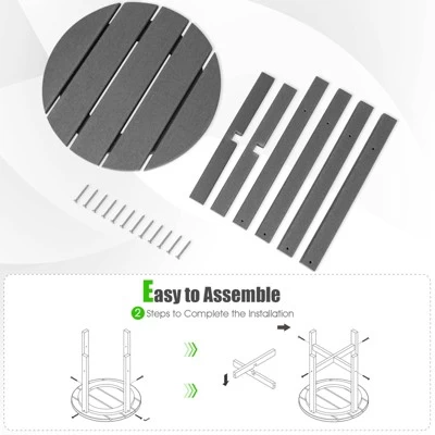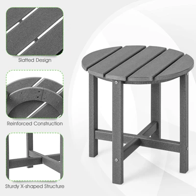With an appropriate height of 18 inches, this end table fits perfectly with your chairs and sofas. The round tabletop can hold necessary items for easy access. Additionally, the premium HDPE material makes this outdoor Adirondack table weather-resistant, fade-resistant, sun-protective, and waterproof, able to withstand changing outdoor weather conditions. It is also recyclable to protect the environment. Moreover, this patio side table requires no painting, staining, waterproofing, or other maintenance simply clean it with water or soap.