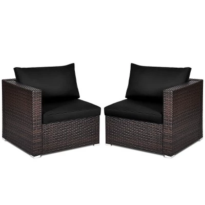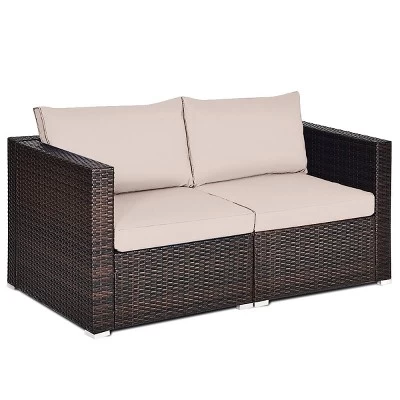 Our rattan corner sofa set is made of premium PE rattan and steel frame, which will afford the test of time and ensure long-lasting service. Equipped with premium aluminium feet, the bottom rattan of corner sofa and your floor is protected from scratching effectively. The corner sofa set also attaches with cushions that have highly resilient and good air permeability, which can provide the best comfortable experience. Zipper design allows you to separate the cover and to clean it easily. Designed with concise and modern style, two corner sofas are great to be used separately or as complement for multi-piece wicker furniture.