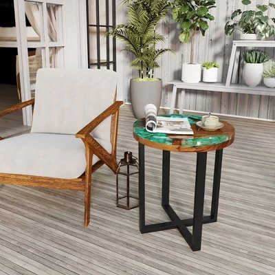 - Stunning Epoxy Resin Design: The round tabletop, with rich tones and unique wood grain patterns, adds warmth and a natural feel to your room. Complemented by epoxy resin treatment, the side table serves as a stunning addition to any living space.