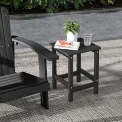 This outdoor side table is the ideal companion for your Adirondack chair! With a suitable height of 18.5 inches, this end table perfectly complements your chairs and sofas. The square tabletop provides ample space for your essential items, ensuring convenient access. Constructed from premium HDPE material, this outdoor Adirondack table is weather-resistant, fade-resistant, sun-protective, and waterproof, making it a durable choice for outdoor use in varying weather conditions. Moreover, this patio side table requires minimal maintenance as it does not need painting, staining, waterproofing, or other treatments just simply clean it with water.
