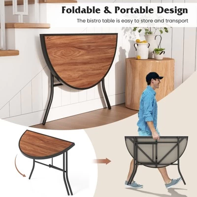 - Heavy-duty Metal Frame: Built with powder-coated metal frame, the folding bistro table boasts great stability and durability, supporting up to 110 lbs/50 kg. Additionally, non-slip foot pads prevent the floor from scratches.