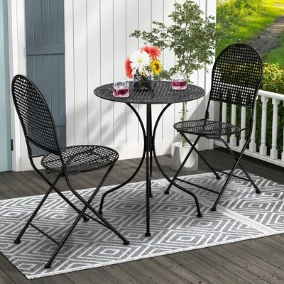 - Functional 3 Pieces Bistro Set: This bistro set consists of 2 chairs and 1 round table, providing a cozy place for your family or friends while enjoying casual afternoon. Not only can the furniture set be a perfect decoration but also it is suitable for various outdoor occasions, such as garden, yard, and porch, etc. Please keep the furniture set indoors on a wet day.