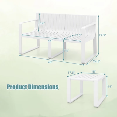 Upgrade your outdoor living space with this 3-piece patio furniture set.This outdoor furniture set includes a cozy loveseat and 2matching side tables, perfect for creating a cozy conversation area. Crafted from all-weather material, this patio bistro set is ideal for outdoor use in your lawn, backyard, poolside, balcony, garden, or deck. The side tables are perfect for holding drinks, snacks or decorations. In addition, the slatted design adds a touch of elegance while also ensuring quick drainage after rain. Transform your outdoor area into a stylish and functional space with this versatile patio furniture set.