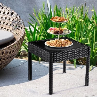 - 【Coffee Table with Glass Top】 This bistro set features an elegant coffee table which is perfect for drinks, fruits, newspapers and other items. The thick tempered glass top is firmly fixed by four suckers to avoid easy moving or falling.