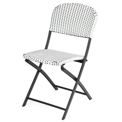 Featuring with simple and contracted design, this 3-piece outdoor furniture set containing 2 dining chairs and 1 coffee table, is an ideal leisure and holiday companion to relax and enjoy with your family or friends. Crafted from sturdy steel construction and durable rattan, this balcony furniture set can withstand the test of time and high temperature. This wicker bistro table set is foldable and lightweight for convenient transportation.