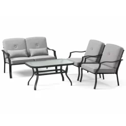 Indulge in ultimate comfort and style with this versatile 4-piece patio conversation set. Whether you’re hosting a gathering or simply unwinding outdoors, this set is an ideal addition to any occasion. The single sofas and loveseat come with seat and back cushions for unmatched comfort. In addition to comfort, the set offers exceptional stability due to its reinforced metal frame, which can support heavy weights without compromising durability. The tempered glass tabletop adds an elegant touch and is easy to clean. With a simple yet elegant design, this set effortlessly complements various outdoor spaces like your poolside or backyard.