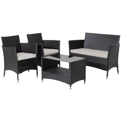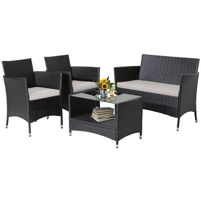 - long-lasting for Outdoor Use: Supported by reinforced metal frame which is also rustproof, the 4 pieces are of high stability. Plus, this patio set features hand-woven mix brown PE rattan which looks elegant and withstands long-time outdoor use.