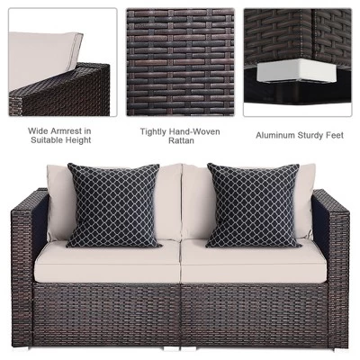 - Selected Materials & Strong Load Capacity: The rattan corner sofa set is made of premium PE rattan and steel frame. The set is able to withstand the weight up to 710 lbs, which will satisfy the daily needs. long-lasting materials will afford the test of time and ensure long-lasting service.|