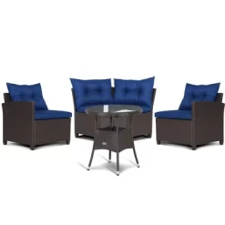 Are you looking for the patio furniture? Check out this 4-pcs wicker sofa and table set! This set includes one middle sofa, two side sofas and a side table. It can meet your daily needs of family party. The sofas are designed for comfort with wide backrests, 3 seat cushions and 4 back cushions. You can relax yourself when you sit on them. Moreover, the seat cushions have cover that can be removed for easy cleaning with zipper design. You can have a good coffee time with the additional side table which can hold drinks and snacks. Constructed of rustproof steel and tight rattan, this conversation set is sturdy and long-lasting. Whether you place this sofa set on your patio, garden, backyard or poolside, it will be an absolute highlight.