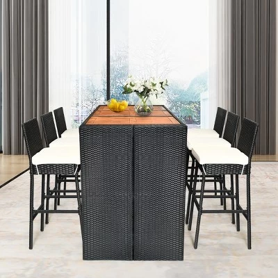 - Convenient Versatility: With natural and minimalist style, this bar set can be used not only for multi-person dining, but also for entertaining guests. The 7-piece furniture set is an excellent choice for your dining room, patio, balcony, garden, courtyard or poolside, offering the joyful and stunning leisure.