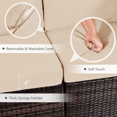 Material: PE Rattan, Steel, Tempered Glass, Polyester, Sponge, Ceramic, PVC, Lava Rock
