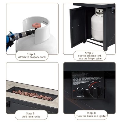 Dimension of Fire Pit Table: 42″ x 20″ x 25″ (L x W x H)