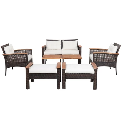 Including 1 loveseat,2 single chairs,2 ottomans,2 double-tier side tables and cushions