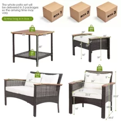 - 【3-Package Delivery】 The whole patio set will be delivered in 3 packages so the arriving time may be different, and the screw bag in the first box. The complete accessories and clear instructions will make the patio set easy to assemble. But please do not tighten all the screws until all the holes are aligned.