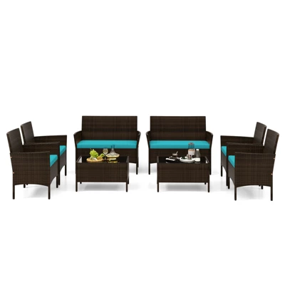 Material: PE Rattan, Metal, Tempered Glass, Polyester, Sponge