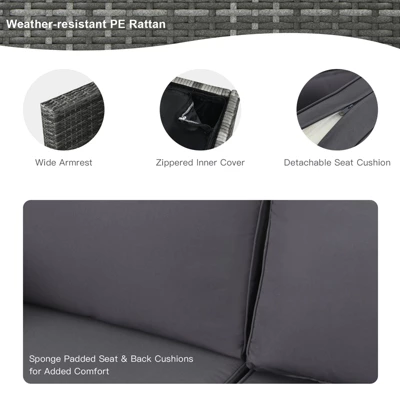 - Rattan and Steel Construction: Rattan design looks modern and delicate that complements any space. Premium PE rattan has perfect gloss and texture and difficult to fade. Steel frame is firm and durable, providing 355 lbs load-bearing capacity for each sofa.