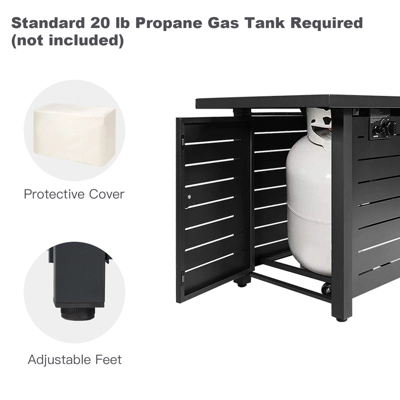 Fire Pit Table Dimension: 42″ x 20″ x 25″ (W X D X H)