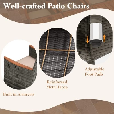- Sturdy & long-lasting Construction: Made of premium acacia wood and wicker, this table and chair set is waterproof and can withstand different weathers, ensuring that it can stand the test of time. Due to its stable structure, the maximum load-bearing capacity of the table is 360 lbs, while each chair can bear 400 lbs.