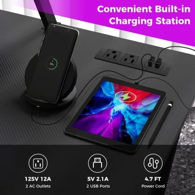 - 【Convenient Built-in Charging Station】This computer desk offers great convenience for electronic device users. The built-in charging station includes 2 AC outlets (125V/12A) and 2 USB ports (5V/2.1A) for charging cell phones, iPads and other electronic devices, so you can avoid the worry of running out of power.